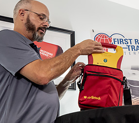 The CPR and AED components cover the knowledge needed to address one of the largest causes of death in the world. Intervening with this knowledge can possibly save a life. The first aid program reviews common techniques to treat serious emergencies, as well as less serious, more common issues.
